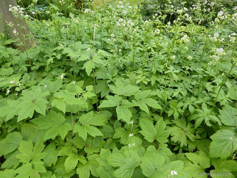 Astrantia major L. - jarmanka většíTrvalka, listy v přízemní růžici, okraj listu pilovitý, květenství okolík, použití do skupin, záhonová rostlina. | ![]() 0.60 m | ||