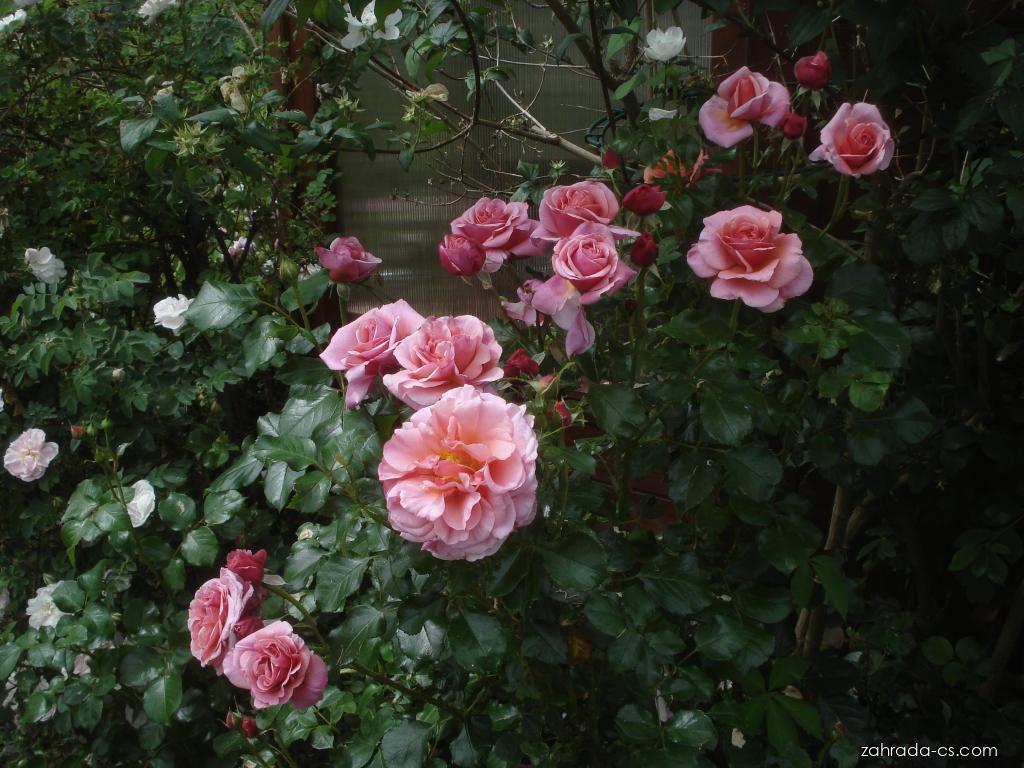Růže 'Aloha' - RosaRosa 'Aloha'; Čeleď: Rosaceae - růžovité Šlechtitel: Kordes 2003 Pnoucí růže 'Aloha' měla by být odolná vůči chorobám, kvete opakovaně, výška cca 250 cm, na první fotce je ve společnosti klematisu Hagley Hybrid |